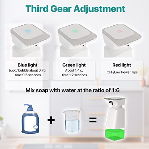 Auto Touchless: con sensore a infrarossi intelligente integrato, distributore di sapone in schiuma completamente senza touch. Aggiungi sapone in schiuma al serbatoio o sapone normale miscelato, pust le mani sotto il distributore con l'area del sensore (3 ~ 5 cm), otterrai automaticamente sapone in schiuma in 0,2 secondi.