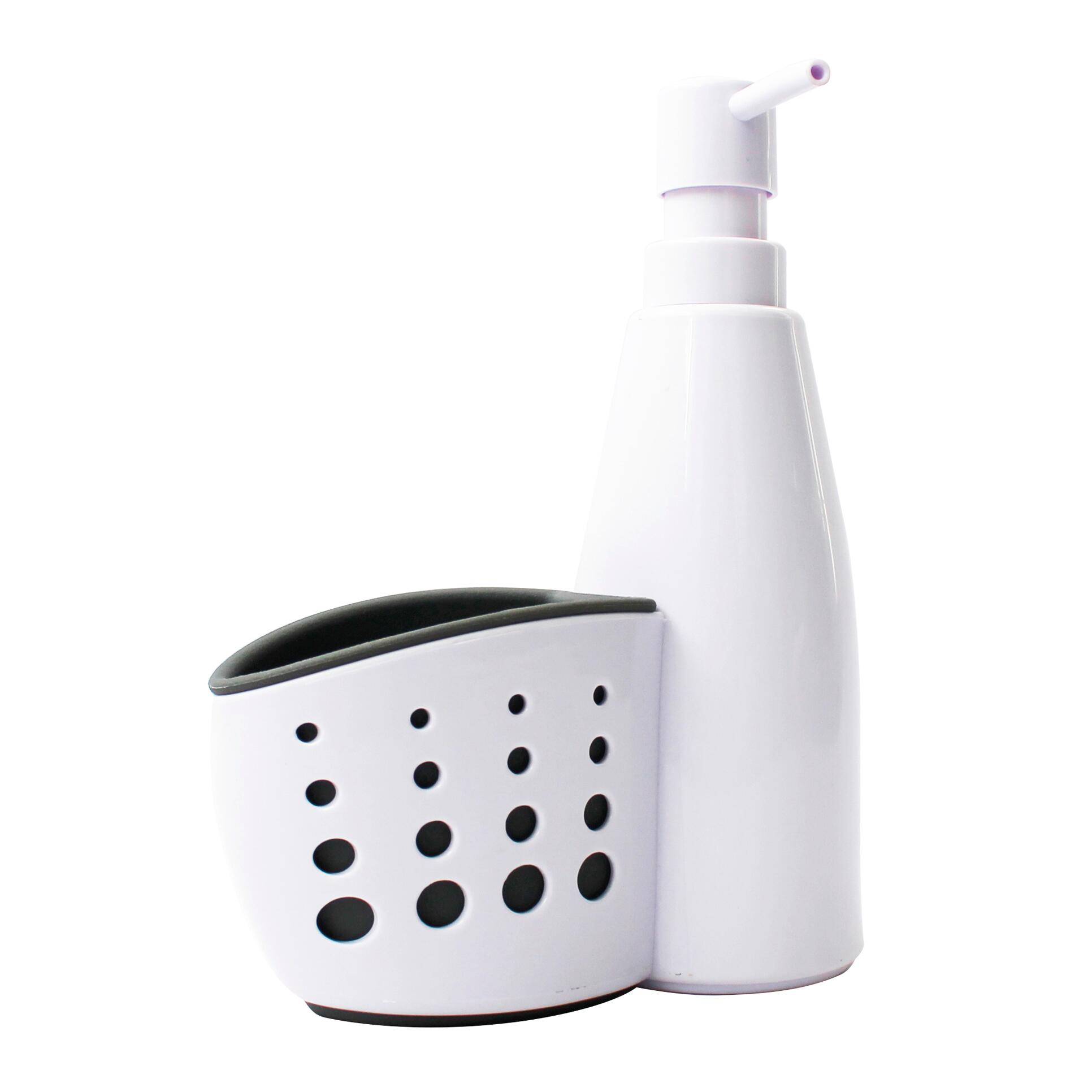 Dispenser sapone da lavello con porta spugna, in plastica colore bianco e grigio