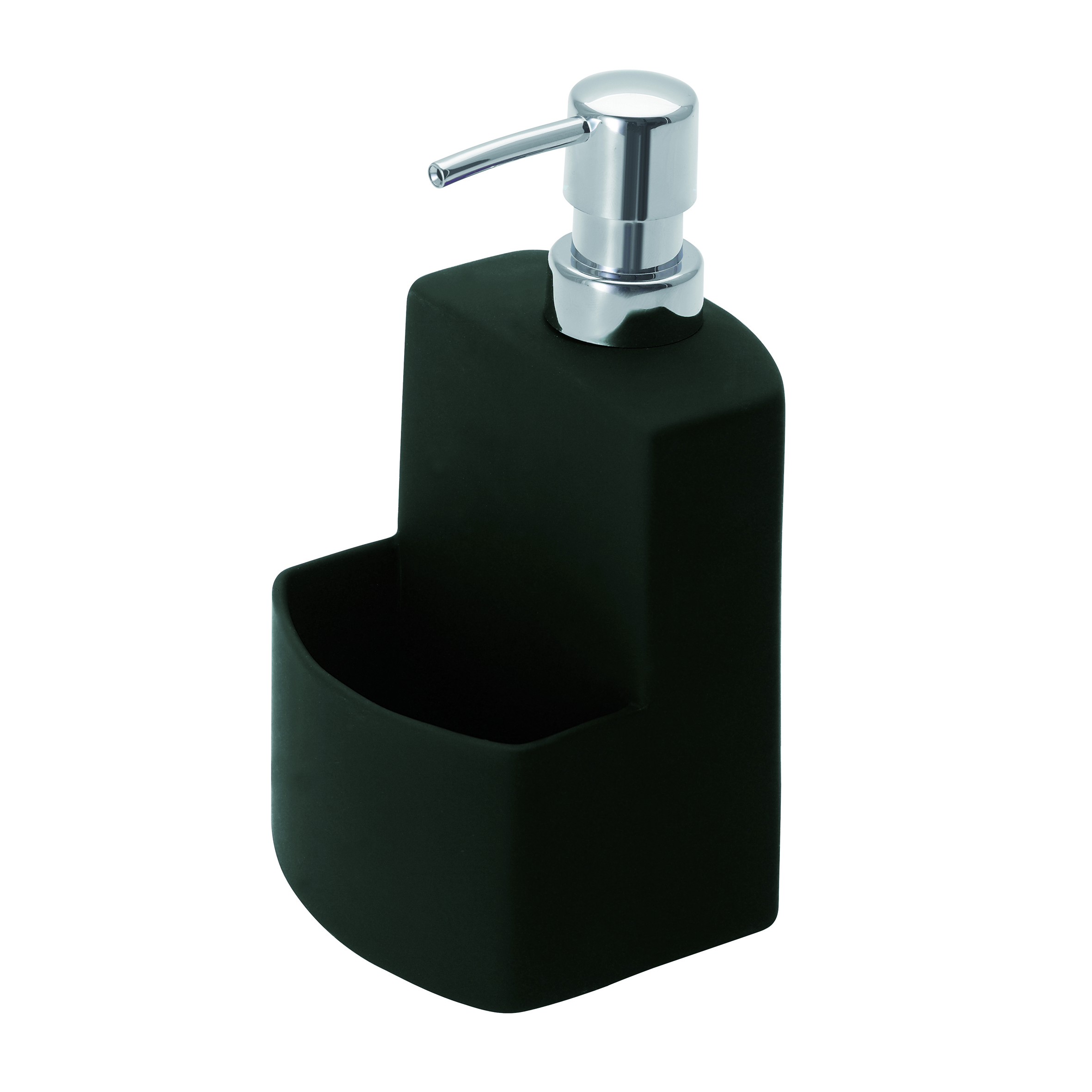 In Ceramica. Ideale per la sistemazione del lavello, per sapone liquido o detergente piatti.. Con possibilità di custodire una spugnetta.. Dispenser con pompetta in plastica cromata extra lucida