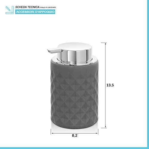 Dispenser sapone grigio 350 ml, ceramica colore grigio, linea Cristal