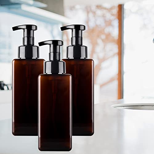Dispenser Sapone Schiuma 3 Pezzi Plastica Erogatore del Sapone 650 ml Ricaricabile per Lozione Olio Essenziali Sapone(Marrone)
