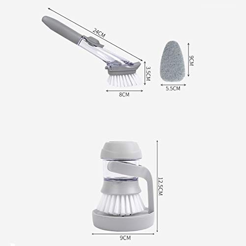 Set 2 pezzi Spazzola per piatti - Sapone di riempimento, Facilità di pulizia della padella e del piatto con il tocco della mano, 2 modelli per la vostra convenienza