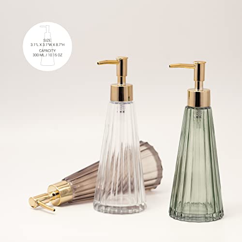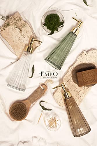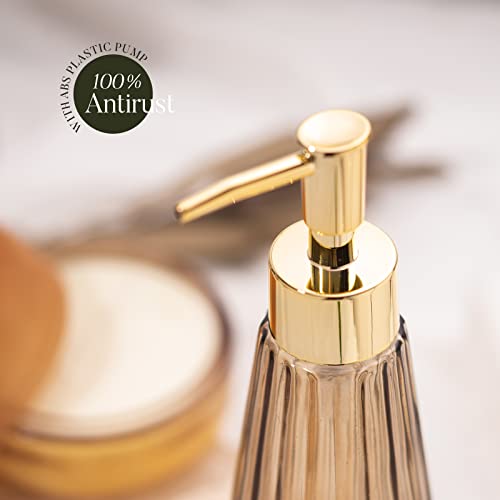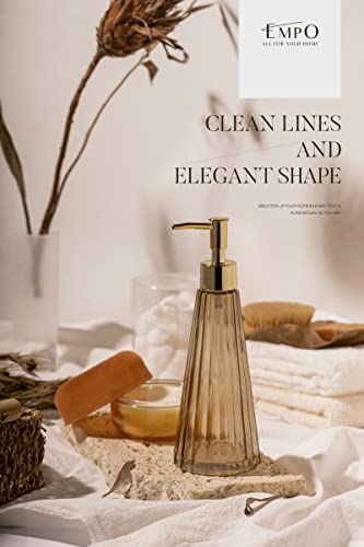 EMPO Dispenser di sapone in vetro vintage elegante, per sapone liquido/disinfettante, bottiglia di shampoo con pompa, dispenser di sapone per le mani, accessori da bagno (Marrone)