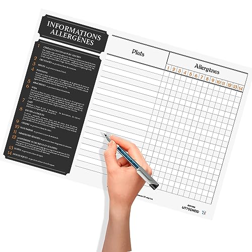 Display in formato A3 con 20 linee con spazio sufficiente per scrivere prodotti o piatti contenenti allergeni.