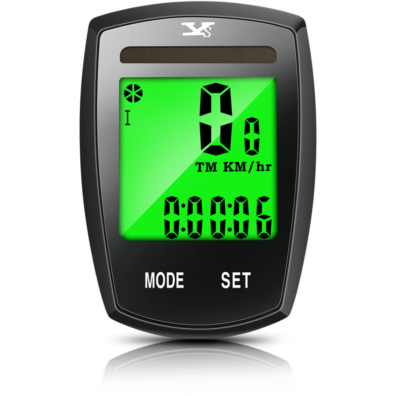 20 Il ciclocomputer LCD SGODDE con luce di sfondo verde consente di leggere la notte digitale lontana, al buio o nel lungo tunnel. 16 Funzioni Confronta record di velocità, media, massima, relativa, tempo di guida, record consumato, cronometro, ecc.< br/> Design ad energia solare Un pannello solare sul ciclocomputer che genera elettricità dal sole al ciclocomputer. Correzione di un problema di batteria scarica che può verificarsi durante la guida. Display LCD con design in background con numeri grandi in modo da poter leggere facilmente i dati durante la guida. Il design LCD retroilluminato assicura che il display sia sempre di facile lettura, anche di notte. gli spruzzi d'acqua o la pioggia entrano nel tachimetro e la guarnizione posteriore della corona dentata migliora la protezione impermeabile. Si prega di non immergere il taco nell'acqua per troppo tempo. Attacca il volante del morsetto e posizionaci sopra il ciclocomputer piccolo. fascette di cavo. TIPO: La distanza tra il
