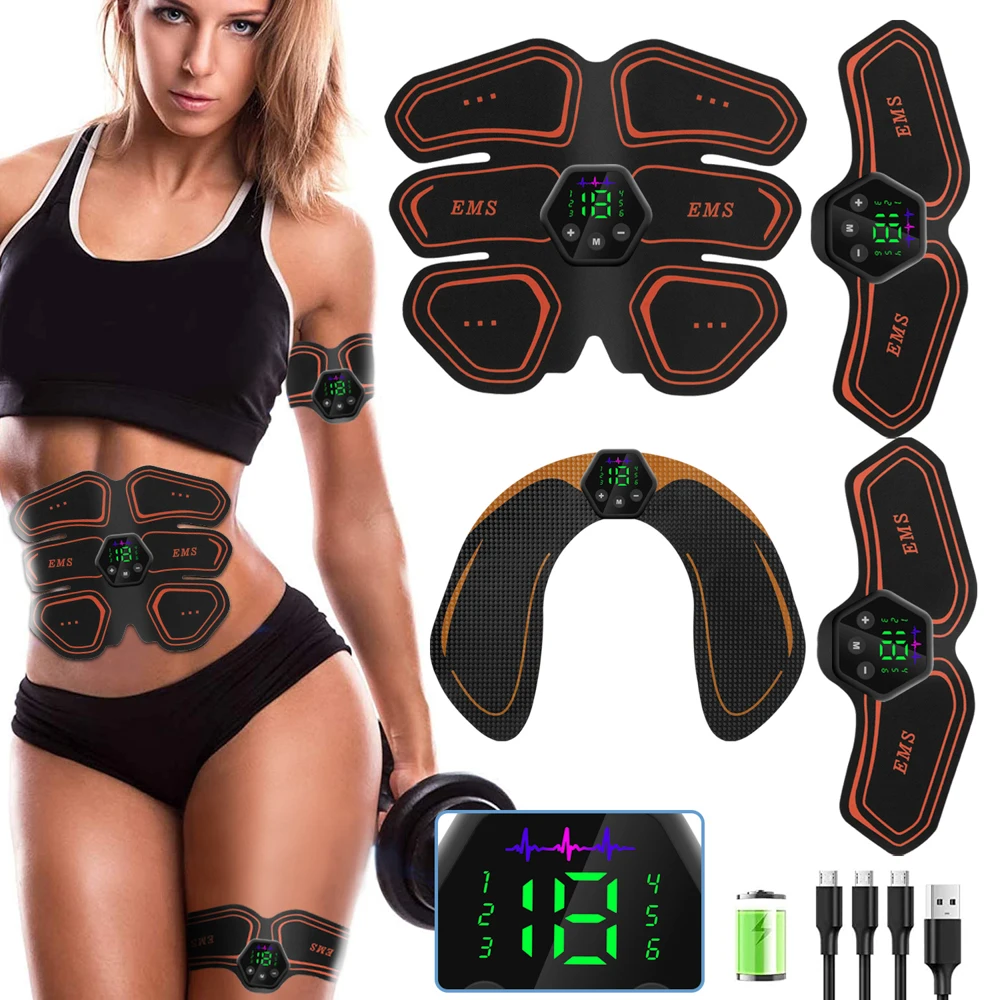 LCD Display Muscle Stimulator EMS Abdominal Hip Trainer Toner USB Abs Fitness Training Home Gym Weight Loss Body Slimming