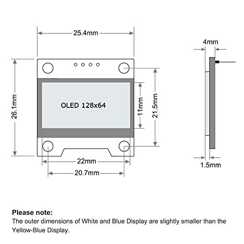 OLED LCD Display I2C IIC 0.96 Pollici 128x64 Pixel Chip SSD1306 per Microcontrollore Arduino Raspberry Pi 51 Serie, MSP430 Seri, STIM32 / 2, SCR ecc. (3 Pezzo, Bianco IIC)