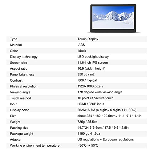 Display Portatile Da 11,6 Pollici,1080P HD16:9 Schermo Full-View IPS Monitor Con Ingresso HDMI+VGA Per Serie Raspberry Pi,PS3,PS4,X-BOX 360,Per Gli Appassionati Di Macchine Da Gioco Aeromodellismo