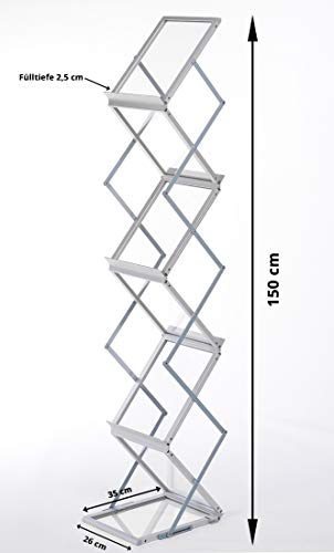 DISPLAY SALES - porta brochure pieghevole | Supporto per volantini 6 x DIN A4 incl. custodia per il trasporto | porta menu ristorante A4 in piedi in argento | Supporto per riviste