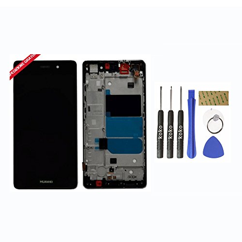 Display lcd + touch screen + frame vetro vetrino huawei p8 lite black nero ricambio completo con kit riparazione biadesivo