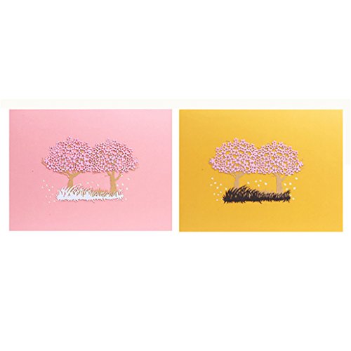 DISPLAY08 creative Handmade 3D Paper Tole Flowering Trees Thanks Birthday wedding Cards Orange