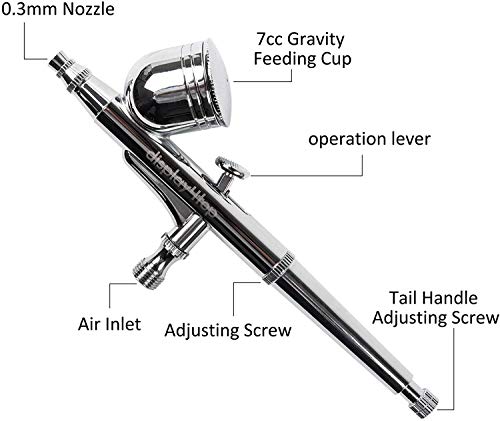 Display4top 1/5HP Multi-Purpose Professionale Aerografo Compressor Kit Sistema, con 2 Aerografo:0.3MM Dual Azione Gravity Feed, 1 Aerografo: Alimentazione sifone 0.8mm Singola Azione