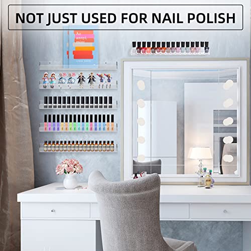 MATERIALE ACRILICO ROBUSTO ROBUSTO - Ogni ripiano Splendidamente realizzato in un unico pezzo di Acrilico di grado Premium Superior da 3 mm, rapido e facile da attaccare alla parete. Risparmio di spazio, montaggio a parete, design moderno di display e archiviazione per tutti i tuoi smalti per unghie, palette, ombretti, rossetti, cosmetici, oli essenziali e altro.