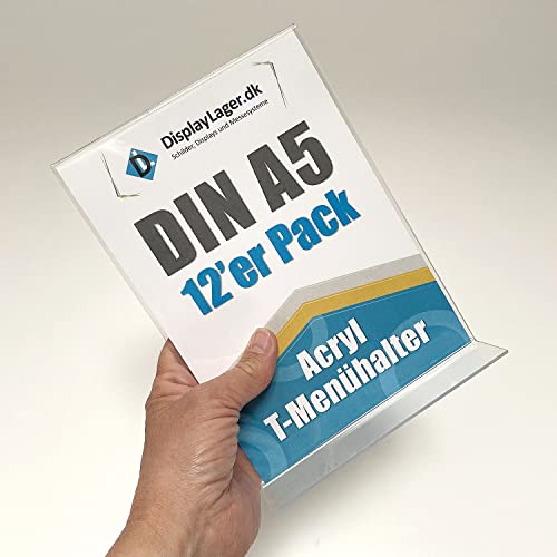 DisplayLager - Confezione risparmio da 12", espositore da tavolo dritto/bancone in acrilico trasparente (A5)
