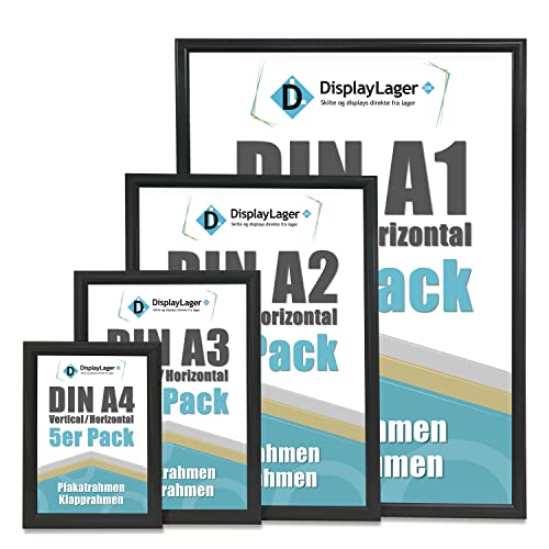 DisplayLager - 10 Pezzi A4 Cornice a Scatto da 25 mm, Profilo in Alluminio Nero Disco di Protezione antiriflesso e Materiale di Fissaggio