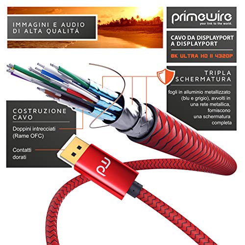 CSL - 1m Cavo Displayport 8k - DP 1,4-7680 x 4320 60 Hz - 3840 x 2160 120 Hz - 1920 x 1200 240 Hz - Larghezza di banda fino a 32,4 Gbit s - HBR3, DSC 1,2, HDR 10 - Retrocompatibile - Rosso