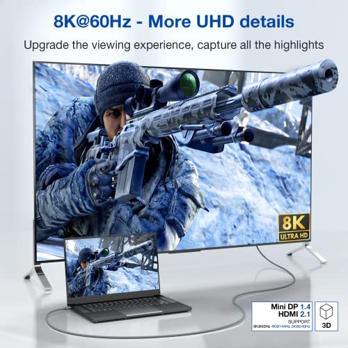 【Cavo da Mini DP 1.4 a HDMI 2.1】 Questo cavo da Mini DisplayPort (fulmine 2) a HDMI consente di collegare laptop con porte Mini DP a display esterni/TV/proiettori con HDMI, che funziona magnificamente sia che si prevede di dare presentazioni o guardare video UHD con il laptop su uno schermo più grande. Nota: trasferisce solo il segnale da mini DP a HDMI, NON HDMI a mini DP.