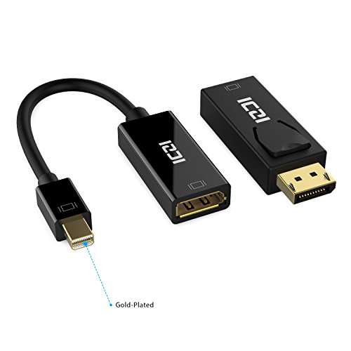 ICZI Cavo Mini DisplayPort Thunderbolt a DisplayPort Adattatore 4K + DisplayPort a HDMI Adattatore 1080P, Set di 2 per Serie Apple Macbook, Mac Mini, iMac, Surface Pro 3 / Pro 3 /Pro 4 e Altri, Nero