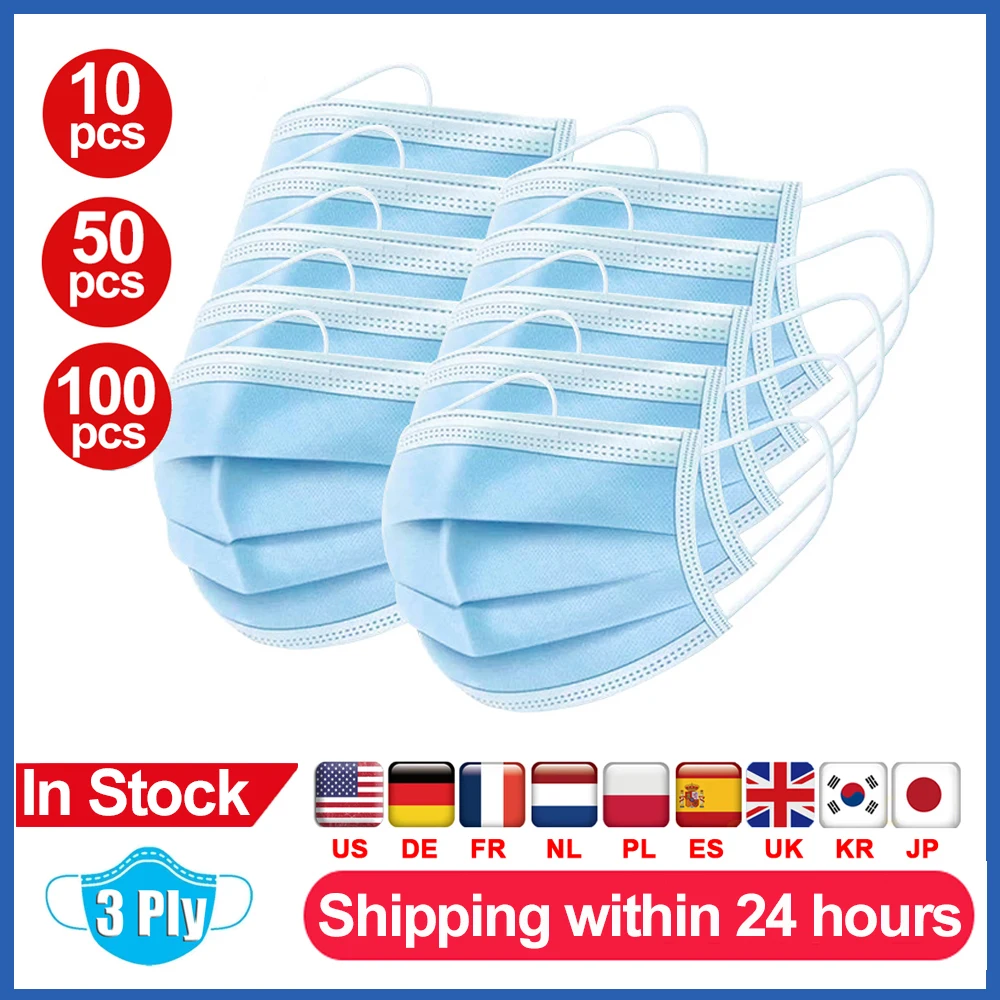 Disposable Medical Mask Non-woven Face Mouth Mask Safe 3 Layer Ply Filter Surgical Mask Anti-Dust Meltblown Cloth Earloops Mask