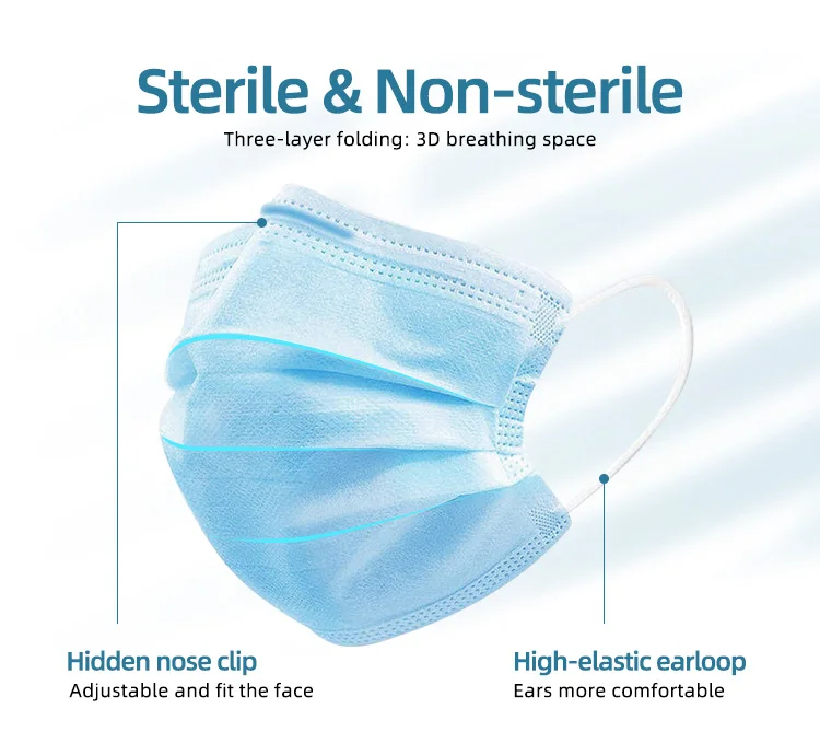 Disposable Medical Mask Blue Surgical Face Mouth Masks 3 Layer Ply Filter Non-Woven Anti-Dust Earloops Mascarilla Masque Mask