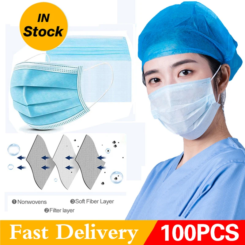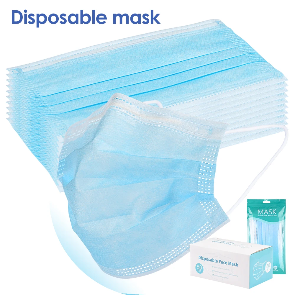 Disposable Face Mask Protective Non-woven Safety Medical Face Mask 3 layers Anti-pollution Flu Ear loop Filter Mouth Nose Masks