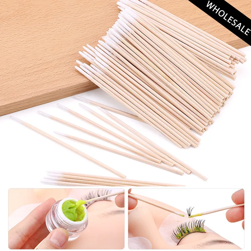Disposable Wooden Cotton Swabs Stick Eyelash Extension tool Glue Removing Makeup Tools Clean Sticks Lash Accessories