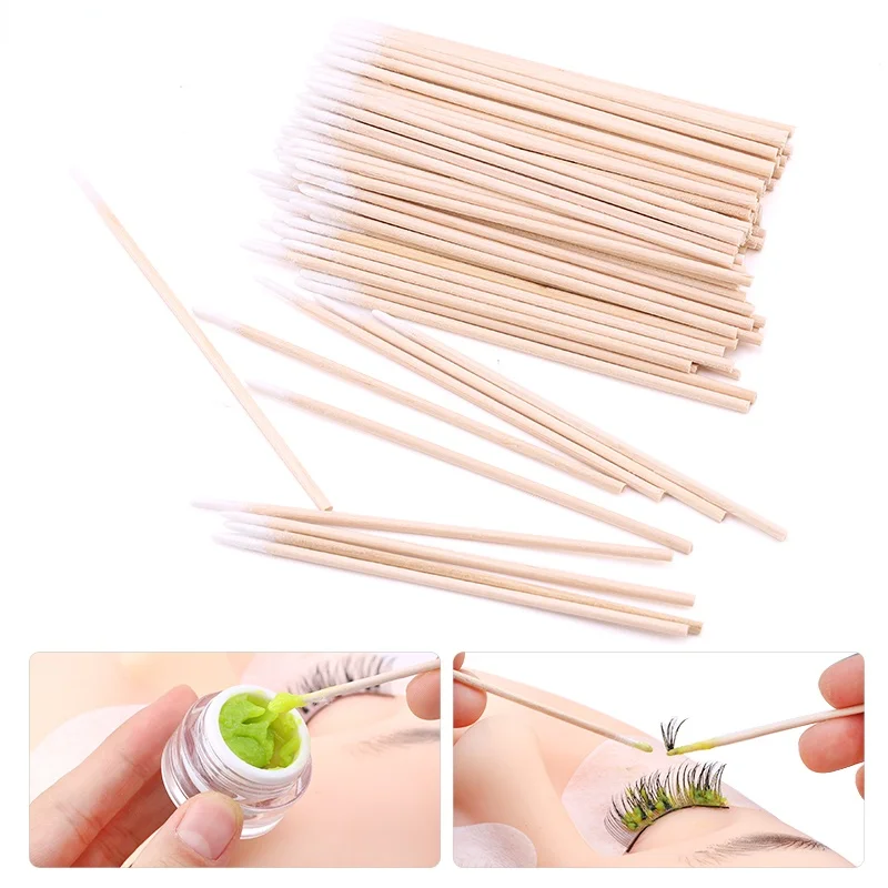 Disposable Wooden Cotton Swabs Stick Eyelash Extension Tool Glue Separate Eyelashes Removing Makeup Lash Tools Clean Sticks