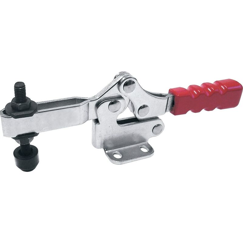 DescrizioneEsecuzione:Sicurezza antisganciamento per viti di pressione.Con piede orizzontale per il fissaggio su piastre di montaggio, ecc.Uso:Per serrare e liberare rapidamente il pezzo nelle lavorazioni di serie o per l'impiego in dispositivi di serraggio speciali. Adatto per il serraggio per foratura, alesatura, rettifica, piegatura, saldatura, montaggio, ecc.Dati tecnici Modello 376625 0 Distanza fori e 11,2 mm Distanza fori f 16 mm ⌀ foro d 4,3 mm Altezza di serraggio H 8 mm Forza di tenuta P1 230 N Forza di tenuta P2 380 N Altezza complessiva 17 mm Lunghezza complessiva 77 mm Vite di pressione M4×20 mm Tipo di prodotto Dispositivi di fissaggio Codice articolo 376625 0 EAN / GTIN 4045197229908