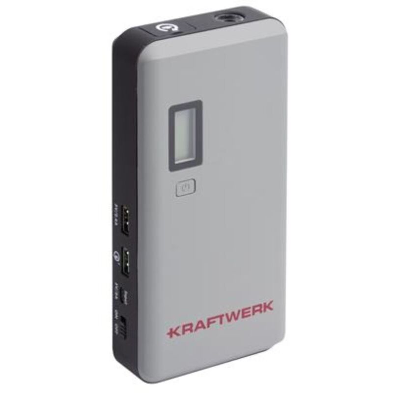 506.000.080 Dispositivo di aiuti iniziali + Power Bank. Aiuto di avvio mobile molto utile per auto diesel e benzina e anche per motociclette con batterie di avviamento a 12 V e per la ricarica di dispositivi USB come smartphone o tablet. Avviare il dispositivo di aiuto, la banca elettrica e la luce a LED. Mostra immediatamente lo stand della batteria, design compatto con una superficie tocco morbida, cavo intelligente con varie funzioni di protezione. Cavo di connessione intelligente con morsetti in ottone. Per i veicoli iniziali con batterie di avviamento da 12 volt, motori a benzina fino a 4,0 L, motori diesel fino a 2,0 L, la tecnologia Quick Charge 3.0 di qualità consente 4 volte di ricarica più veloce. Luce LED integrata con 3 modalità. Un booster con molte opzioni.