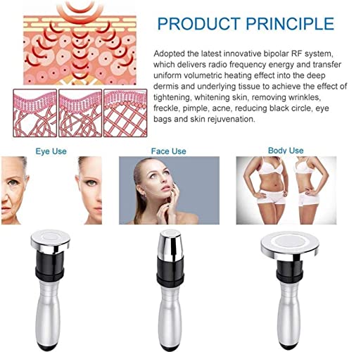 5 VELOCITÀ DI REGOLAZIONE E 3 DIVERSE TESTE BOPOLARI: ci sono 5 ingranaggi di regolazione che possono essere utilizzati per trattare il viso, gli occhi e altre parti del corpo su parti diverse. Con 3 diverse testine bipolari, funziona meglio quando usi un gel o un siero per rotolare delicatamente sul viso e lasciare che le onde radio penetrino nella pelle.