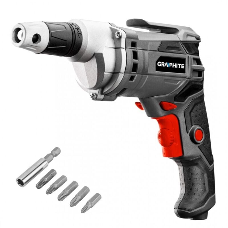 DATI DI BASE Dimensioni lorde (larghezza x altezza x lunghezza) 29,00 x 12,00 x 34,50 cm Peso 3,31 kg Custodia Sì Mandrino tipo HEX 6,35 mm Potenza 520 W Garanzia 3 anni Regolazione della velocità Sì Trapano avvitatore in rete 520 W, velocità 0-4200 per minuto, il case GRAPHITE 58G794 è un dispositivo alimentato da rete con una potenza di 520 W e una velocità di 0-4200/min. Affidabile per avvitare e praticare fori in legno, metallo, ceramica e plastica. Dispone di un blocco dell'interruttore che consente il funzionamento continuo a velocità costante e la possibilità di regolare la velocità premendo l'interruttore. Puoi anche usarlo per regolare la profondità delle viti. Dotato di portainserti per punte da 1/4" 6,35 mm. Il design ergonomico, il peso ridotto del dispositivo e un cavo di alimentazione lungo 4 metri facilitano il lavoro in luoghi difficili da raggiungere. Grazie all'impugnatura antiscivolo, il trapano sta comodamente in mano. Sarà Offerto in un set con supporto magnetico