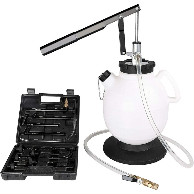 La custodia in plastica in dotazione contiene 15 adattatori con diversi angoli di uscita e filettature dell'adattatore (un adattatore corto, un adattatore lungo e un adattatore universale) Adatto a diverse marche e modelli di auto. < p>Con funzione di ritorno per riduttori con apertura di riempimento troppopieno, una protezione perfetta per te: il riduttore viene riempito con la pompa e l'olio in eccesso ritorna nel contenitore del sistema di riempimento dopo la commutazione del gruppo pompa - nessun disordine e nessuno spreco. < /p> Per il riempimento con olio di trasmissioni/convogliatori e differenziali. Compreso un set di adattatori con tutte le uscite angolari per veicoli con spazi di installazione estremamente ristretti al riempimento dell'olio. Questa pompa è particolarmente ecologica e facile da usare. Con un ottimo rapporto qualità-prezzo, non puoi sbagliare. Spurgo liquido freni.