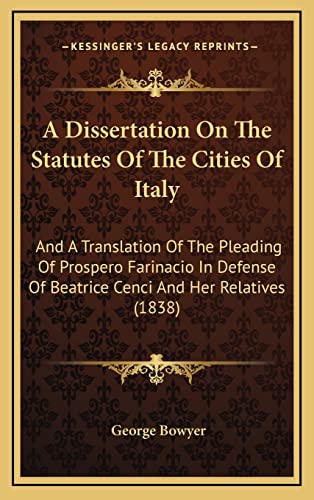 A Dissertation on the Statutes of the Cities of Italy: And a Translation of the Pleading of Prospero Farinacio in Defense of Beatrice Cenci and Her Relatives (1838)