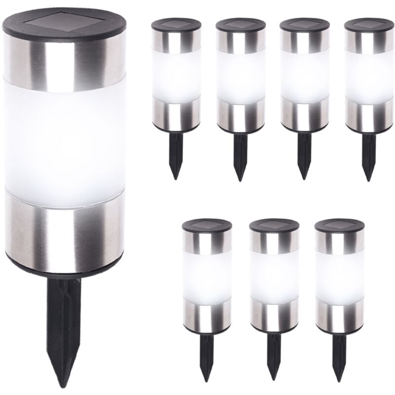 Che siano piantati nel vostro giardino o semplicemente posizionati lungo il vostro terrazzo o balcone, i dissuasori solari 8 ID Market faranno colpo! Con il loro moderno design in acciaio inox, potrete illuminare i vostri esterni in un batter d'occhio. La loro installazione senza cavi o collegamenti elettrici vi permetterà di installare questo set di 8 dissuasori ovunque e con estrema facilità. Posizionateli sul bordo di una terrazza o anche su una parete esterna e godetevi un'atmosfera piacevole e di tendenza. Potete anche posizionarli in giardino con l'aiuto dei picchetti in dotazione. Dotati di un sensore crepuscolare, i dissuasori solari 2 in 1 si illuminano automaticamente non appena cala la notte: una calda atmosfera garantita!Dimensioni del set di 8 dissuasori solari in acciaio inox - Dimensioni complessive: lunghezza (con palo) 21,5 cm x larghezza 6,3 cm - Dimensioni senza montante: 12,6 cm- Materiale: acciaio inox e plastica- Dissuasori da posizionare o piantare- Batteria