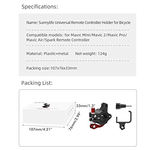 2.Bike barra della maniglia Staffa Pinza Compatibile per Mavic Mini / Mavic 2 / Mavic Pro / Mavic aria / Spark telecomando, saldamente bloccato e non facile da sciogliere.