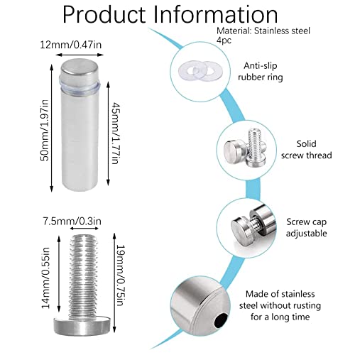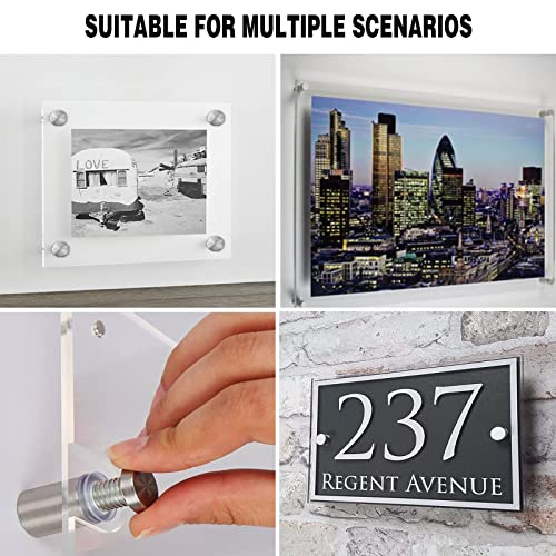 【Squisita superficie del piatto】La vite del chiodo pubblicitario dello scudo di vetro è trattata in superficie dalla trafilatura e la struttura metallica è solida, che può garantire luminosità di lunga durata, resistenza all'abrasione, resistenza all'olio, antivegetativa e una superficie liscia e lucida.