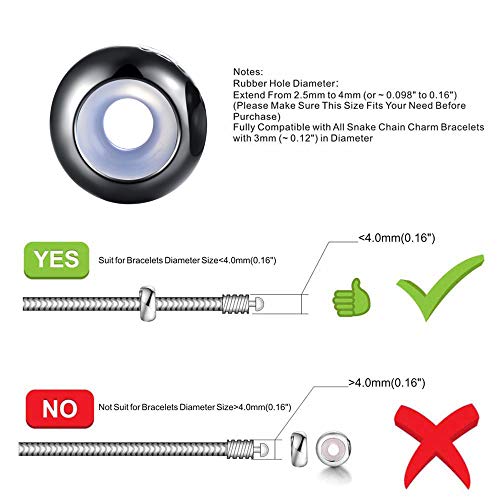 GW Distanziatore Gomma Stopper Charms Bead in Argento Sterling 925 2 Pezzi per Braccialetti Pandora/Stile Europeo (Nero)