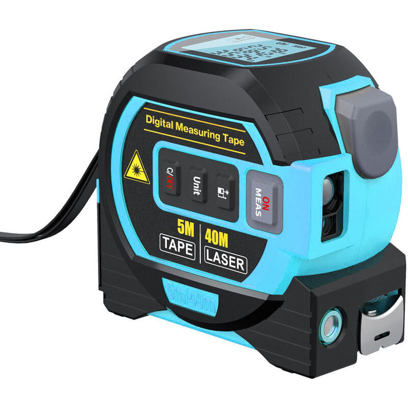 Questo misuratore è un telemetro laser digitale con design 3in1, raggio laser, metro a nastro da 5 m e marcatura laser incrociata, tutto in uno. Dispone di vari tipi di funzioni di misurazione tra cui la misurazione singola/continua, la misurazione dell'area, la misurazione dei volumi e la misurazione pitagorica. Dotato di funzione di memoria dati storici, può contenere max 20 gruppi di dati. Ampie applicazioni, adatte per ingegneria stradale, edilizia abitativa, ingegneria edile, ingegneria della tutela dell'acqua, ingegneria dell'energia elettrica, ingegneria delle condutture, ecc. Caratteristiche: Telemetro laser digitale con design 3 in 1, portata laser, metro a nastro da 5 m e marcatura laser incrociata, tutto in uno. Con alloggiamento in ABS + TPR ad alta elasticità e tenacità, resistenza allo scivolamento e alla caduta, efficace antipolvere, in grado di fornire lunghi tempi di servizio. Display LCD con retroilluminazione, definizione chiara, puoi vedere chiaramente i dati di