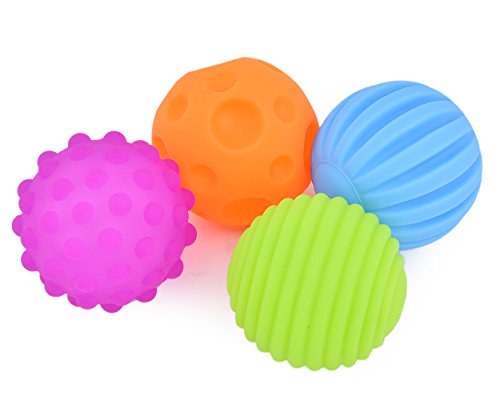 Ds. distinctive style DSstyles Bambini Palla 4 Pezzi Palla Sensoriale Morbide Palla Neonato Palla di Massaggio con sonori Sviluppo Giocattoli per Bambini Bambini - Colori Assortiti