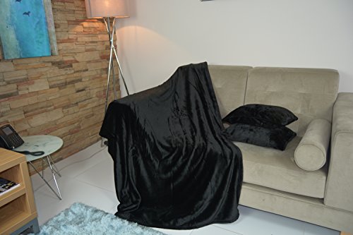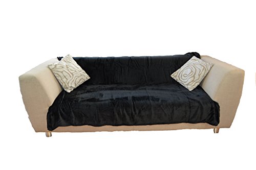 NG Distribution Copriletto in morbida finta pelliccia per letto doppio o divano letto, Poliestere, Nero, Double 150 x 200