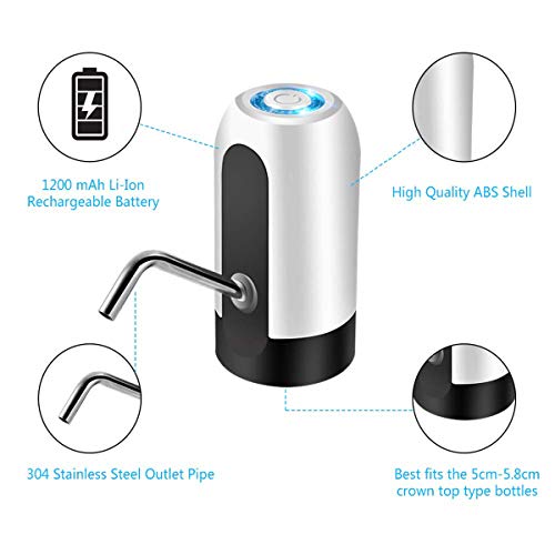 Batteria ricaricabile tramite USB: batteria ricaricabile integrata da 1800 mAh. Può essere utilizzato per 30-40 giorni o circa 4-6 bottiglie di acqua da 5 litri una volta completamente carico. Non c'è bisogno di caricare ogni giorno.