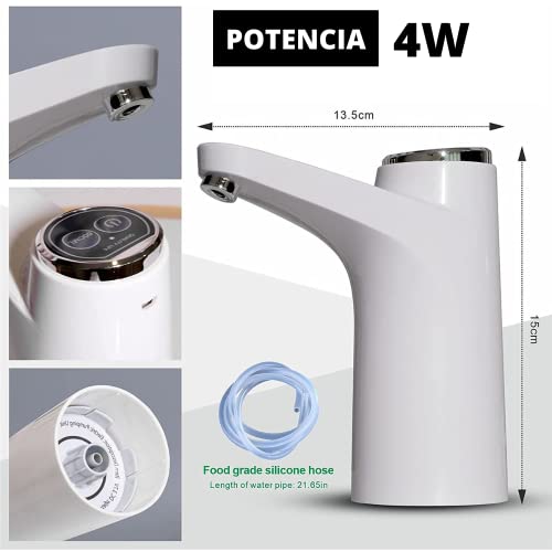 Distributore d'acqua NK - Indicatore LED, batteria ricaricabile USB da 1500 mAh, materiale in silicone, compatibile con da 4,5L 5L 7,5L 10L 11,3L 15L 18,9L - adattatore da 3,8 e 4,8cm - (bianco)