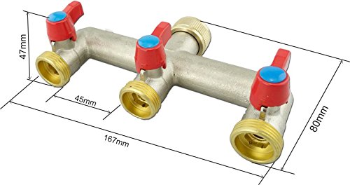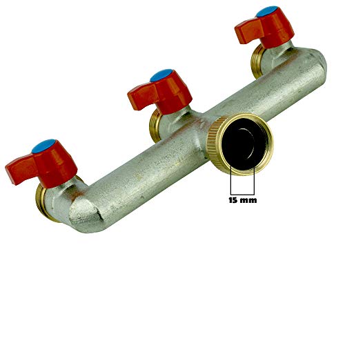 Distributore a 3 vie per tubo dell'acqua, raccordo per tubo flessibile, filetto AG da 3/4 di pollice, per il collegamento di dispositivi come ad esempiofrigorifero SBS, lavastoviglie o lavatrice, per tre tubi di alimentazione a tenuta stagna, raccordo a 3 vie per tubo da giardino, adatto per rubinetti da 3/4 di pollice.