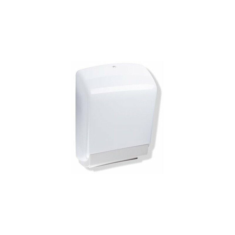 Contenitore di forma rettangolare con apertura di rimozione bordata, utilizzato per contenere asciugamani di carta disponibili in commercio, apertura di rimozione intuitiva, facile da riempire e bloccare, per il montaggio a parete, 310 mm di larghezza, 459 mm di altezza, 160 mm di profondità, contenitore in poliammide bianco-traslucido, bordo dell'apertura di rimozione in poliammide