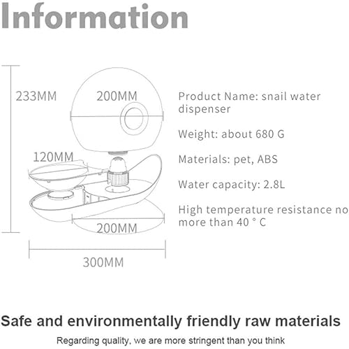 Design unico a forma di lumaca: l'esclusivo design a forma di lumaca non è solo semplice ed elegante, ma aumenta anche la capacità di approvvigionamento idrico. Il design permette a gatti e cani di evitare che si bevano acqua.