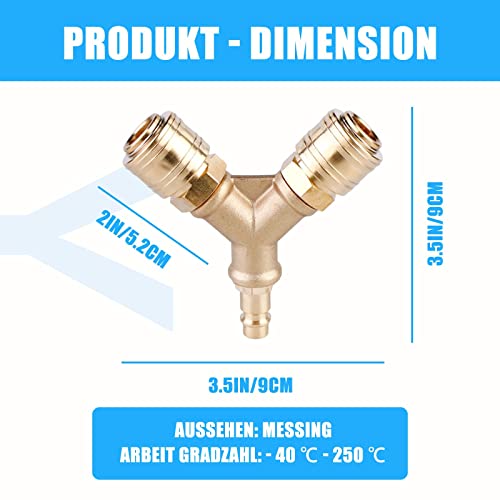 Distributore Di Aria Compressa a 2 Vie Con Due Connettori Filettati, Attacchi Rapidi Aria Compressa 1/4, Connettore Dell'aria Compressa in Ottone, Distributore Aria Compressa Con Anelli Di Tenuta