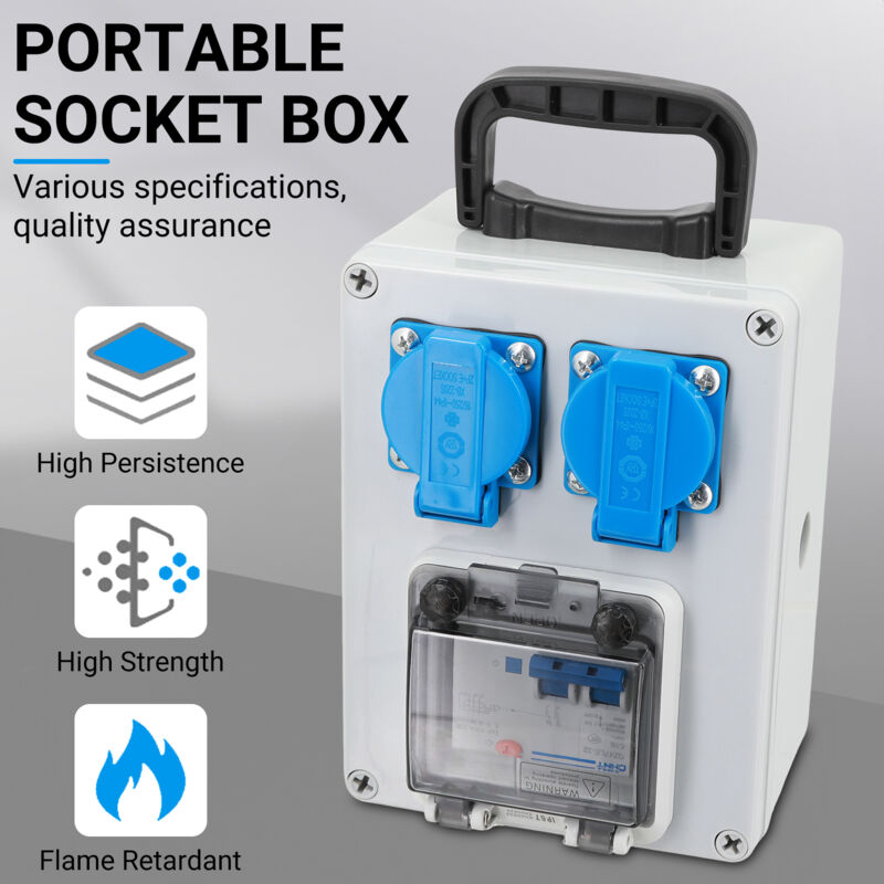 Descrizione: Elevata resistenza all'acqua: grazie al suo alloggiamento IP67, il distributore di alimentazione è adattato a tutte le condizioni meteorologiche e socket IP44 con un coperchio che può essere aperto e chiuso per mantenere l'interno della presa pulita e resistente alla polvere. Visualizzazione della finestra e interfaccia cavo impermeabile: l'alloggiamento è dotato di una finestra di visualizzazione resistente ai raggi UV, che consente di guardare chiaramente le condizioni dell'interruttore. Progettata con un'interfaccia cavo impermeabile, la scatola di distribuzione delle pareti garantisce la sicurezza elettrica. Compatibile con: protezione a terra: con 2 tappi X 16A/250 V, 2p+N può controllare contemporaneamente la linea di zero per garantire la sicurezza dei circuiti, la protezione delle sovratensioni, la presa è adatta anche per la presa a 5 fori da 10A Materiale plastico di qualità, ignifugo e durevole. Completamente attrezzato: questo distributore di alimentazione