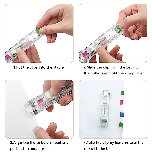 Strumento per la gestione dei file: la cucitrice creativa totale di 250 piccole graffette (contiene 50 clip colorate), ogni clip può contenere circa 40 fogli di carta da 70 g di carta per copia, il morsetto può essere facilmente rimosso e riutilizzato senza dover rimuovere la cucitrice.