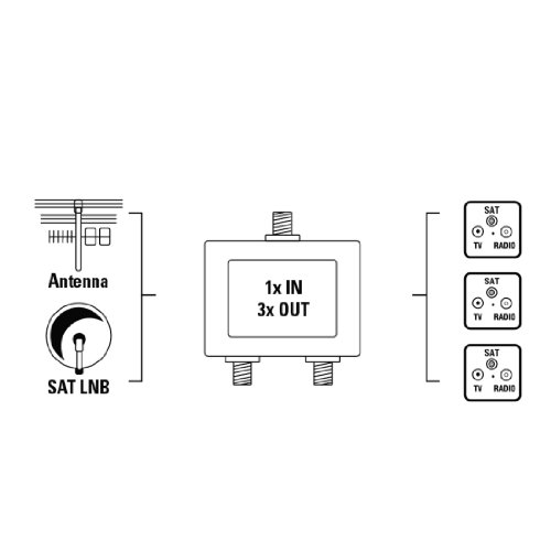 Hama Distributore SAT, 1 Entrata, 3 Uscite, Corpo in Metallo, Grigio