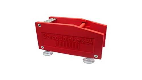 Distributore di etichette manuale fino a 60 mm di larghezza, plastica, rosso, dispenser di etichette da tavolo